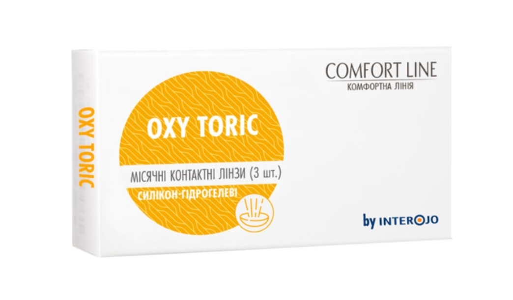 OXY Toric — торичні силікон-гідрогелеві контактні лінзи третього покоління для корекції астигматизму. Виробник — південнокорейська компанія Interojo.