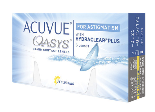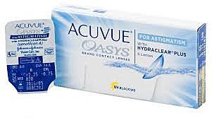 ACUVUE OASYS for ASTIGMATISM - торичні силікон-гідрогелеві контактні лінзи, призначені для корекції астигматичних аберацій з рекомендованим терміном планової заміни 2 тижні при денному носінні та 1 тиждень при пролонгованому, виробництва компанії Johnson & Johnson Vision Care.
