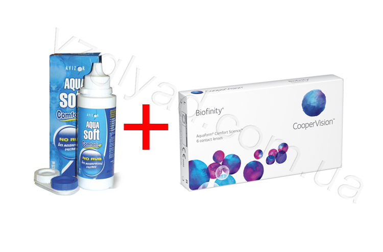 З лінзами Biofinity немає почуття сухості тому, що вона зроблена з силікон-гідрогелевого матеріалу останнього покоління Комфілкон A, що має властивість природного змочування, тому поверхня лінзи Biofinity завжди чудово зволожена, завдяки цьому зменшується кількість відкладень. Поверхня лінзи Biofinity не піддають спеціальної обробки і вводять у матеріал зволожуючий агент, т.к. в цьому немає необхідності.
