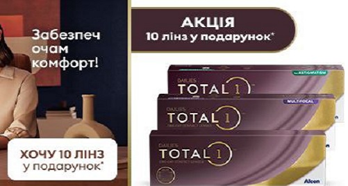 Dailies Total 1 щоденні лінзи компанії ALCON. Це перші силікон-гідрогелеві лінзи, які максимально пропускають кисень і мають вміст вологи, що відповідає складу вологи на поверхні рогівки.