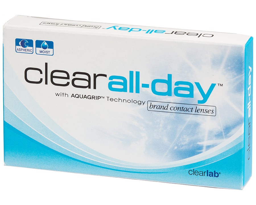 Clear all-day - біосумісні гідрогелеві контактні лінзи щомісячної заміни, виготовлені з матеріалу hioxifilcon методом полімеризації із застосуванням технології Aquagrip компанією Clearlab.