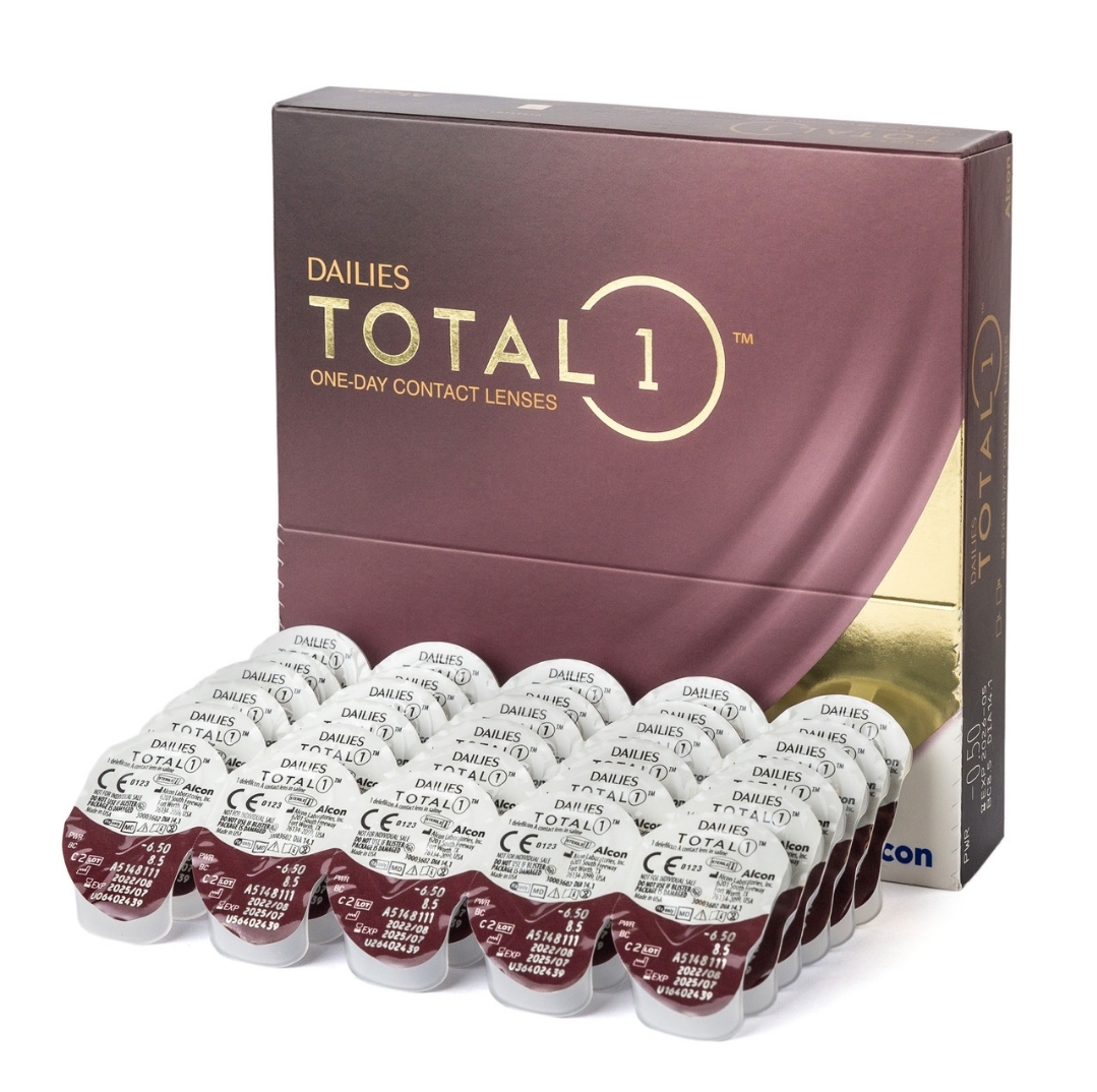 Dailies Total 1 щоденні лінзи компанії ALCON. Це перші силікон-гідрогелеві лінзи, які максимально пропускають кисень і мають вміст вологи, що відповідає складу вологи на поверхні рогівки. Лінзи Dailies Total 1 виробляють за унікальною технологією градієнта вологості. Між центром та поверхнею лінзи знаходиться перехідна зона, вміст вологи в якій змінюється від 33% до 80%. Зміст на поверхні відповідного зволоження забезпечує гладку поверхню, яка дозволить відчувати комфорт протягом 14 годин носіння. Рекомендовані людям із синдромом сухого ока, для людей у яких постійний дискомфорт у лінзах, для тих, кому потрібні контактні лінзи, максимально зручні та безпечні для очей.