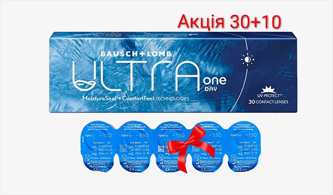 Це одноденні лінзи від виробника Bausch + Lomb, які забезпечують оптимальний комфорт для очей і відмінну корекцію зору протягом дня. Силікон-гідрогелеві лінзи Bausch + Lomb ULTRA One Day також подбають про здоров’я та відмінну форму ваших очей.